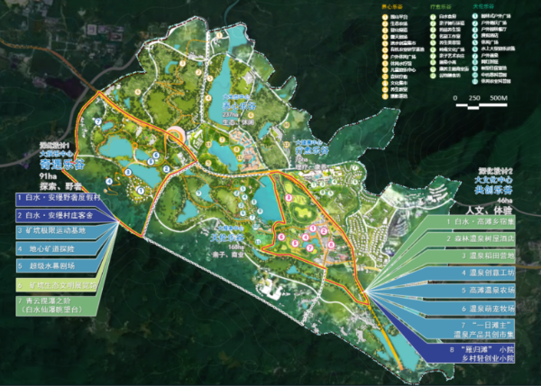 在规划中优先识别并整合森林、温泉、矿坑、田园等本地生态资源,通过生态修复与景观重塑,将自然资源转化为具有文化内涵的体验场景。强调“生态为底、文化为魂”的融合路径,使游客在自然游览中感知地域记忆,实现生态价值与文化认同的双重提升。