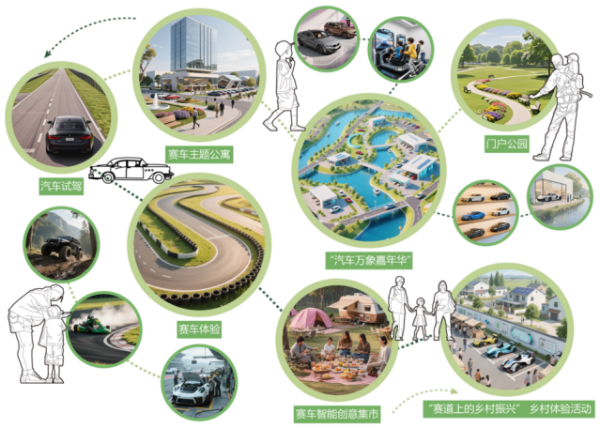 作品《乘风扬粤韵·翠影韵南乡——从化国际赛车与产业小镇规划设计方案》策划差异化的游览线路,满足不同游客深度游览体验需求,此外依托骏永教育基地,制定体育托管训练、特色产品与增值服务等多元化的运营方案,全面提升项目的市场吸引力与持续运营能力。