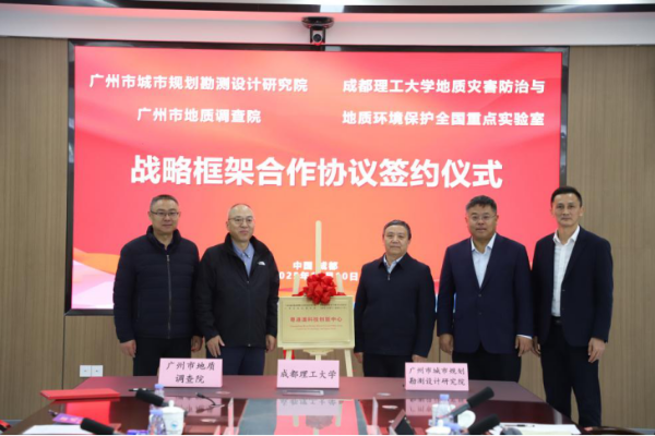 为深入贯彻习近平总书记关于防灾减灾救灾工作的重要指示精神,落实国家关于加强城市安全风险综合防范的决策部署,推动广州地质科技创新与产学研用深度融合,2025年12月10日至11日,广州市地质调查院赴成都理工大学,同成都理工大学地质灾害防治与地质环境保护全国重点实验室、广州市城市规划勘测设计研究院有限公司共同举行工作交流座谈会,并签署三方战略合作框架协议。