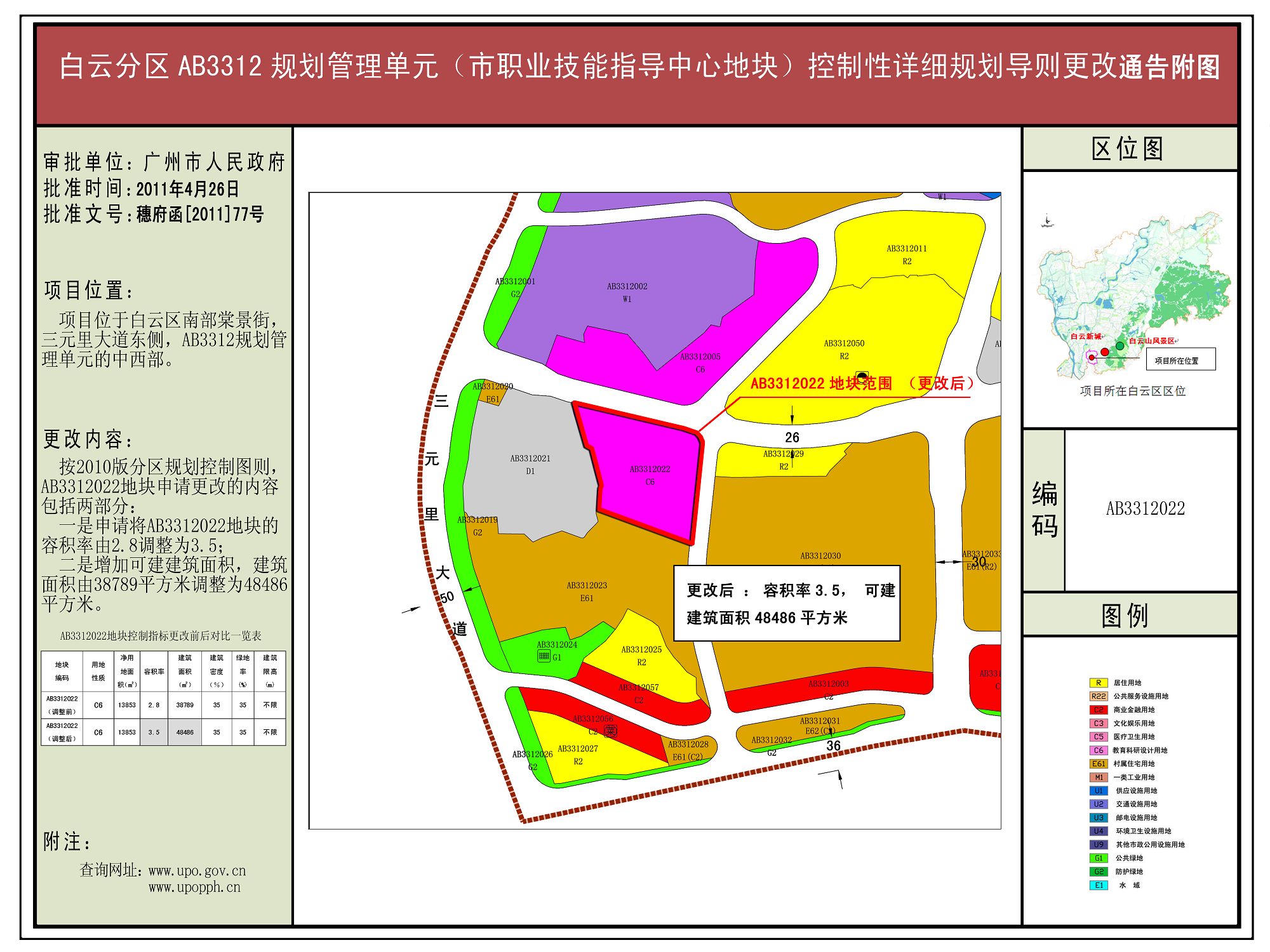 白云分区AB3312规划管理单元(市职业技能指导中心地块)控规导则更改 沙巴体育APP网站