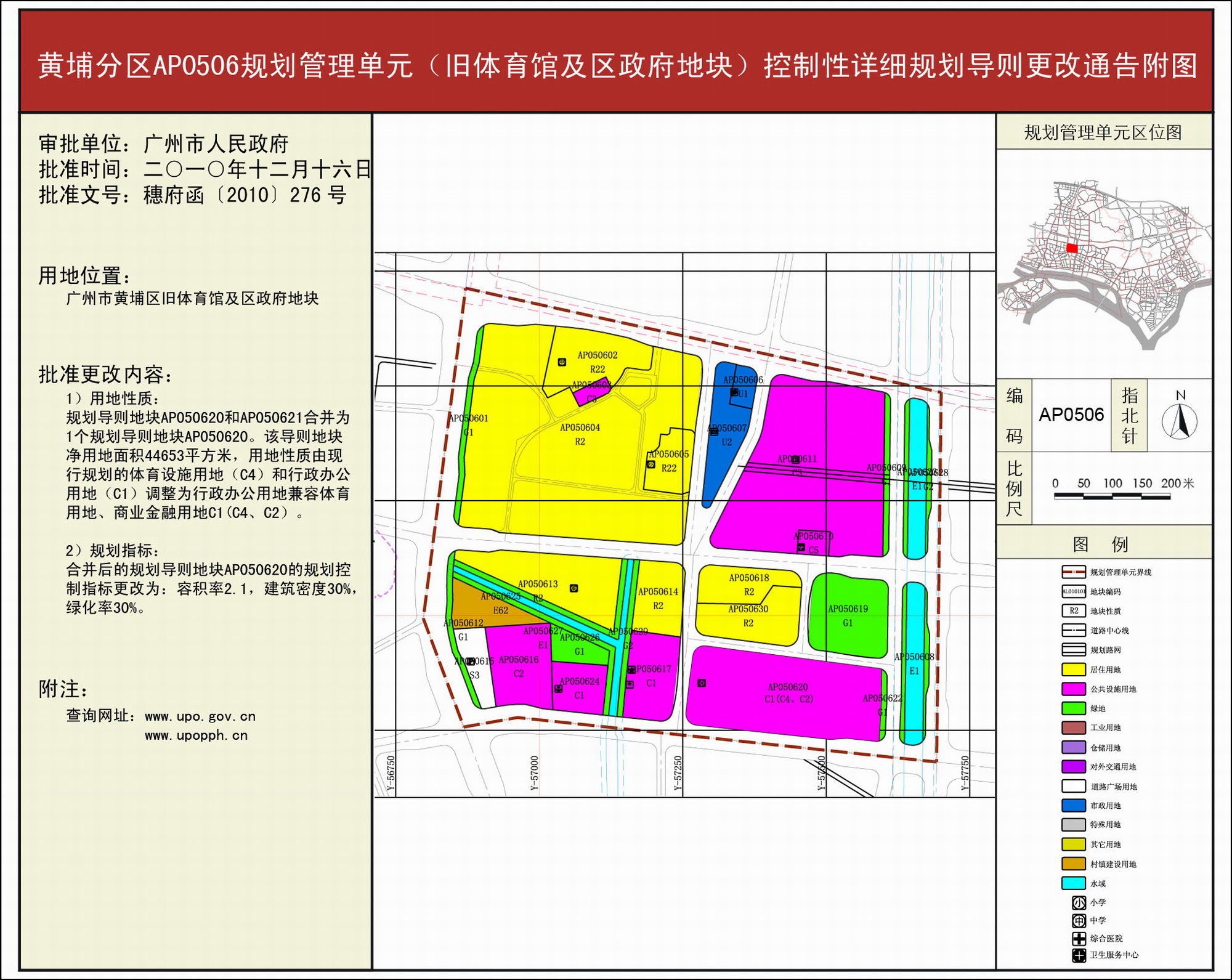 黄埔分区AP0506规划管理单元(旧体育馆及区政府地块)控制性详细规划导则更改