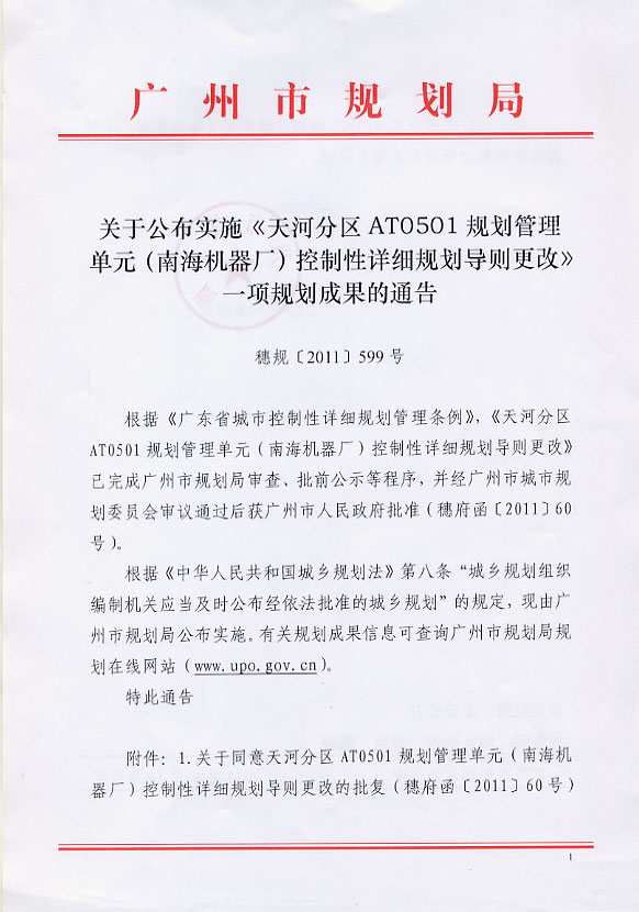 天河分区AT0501规划管理单元(南海机器厂)控制性详细规划导则是更改