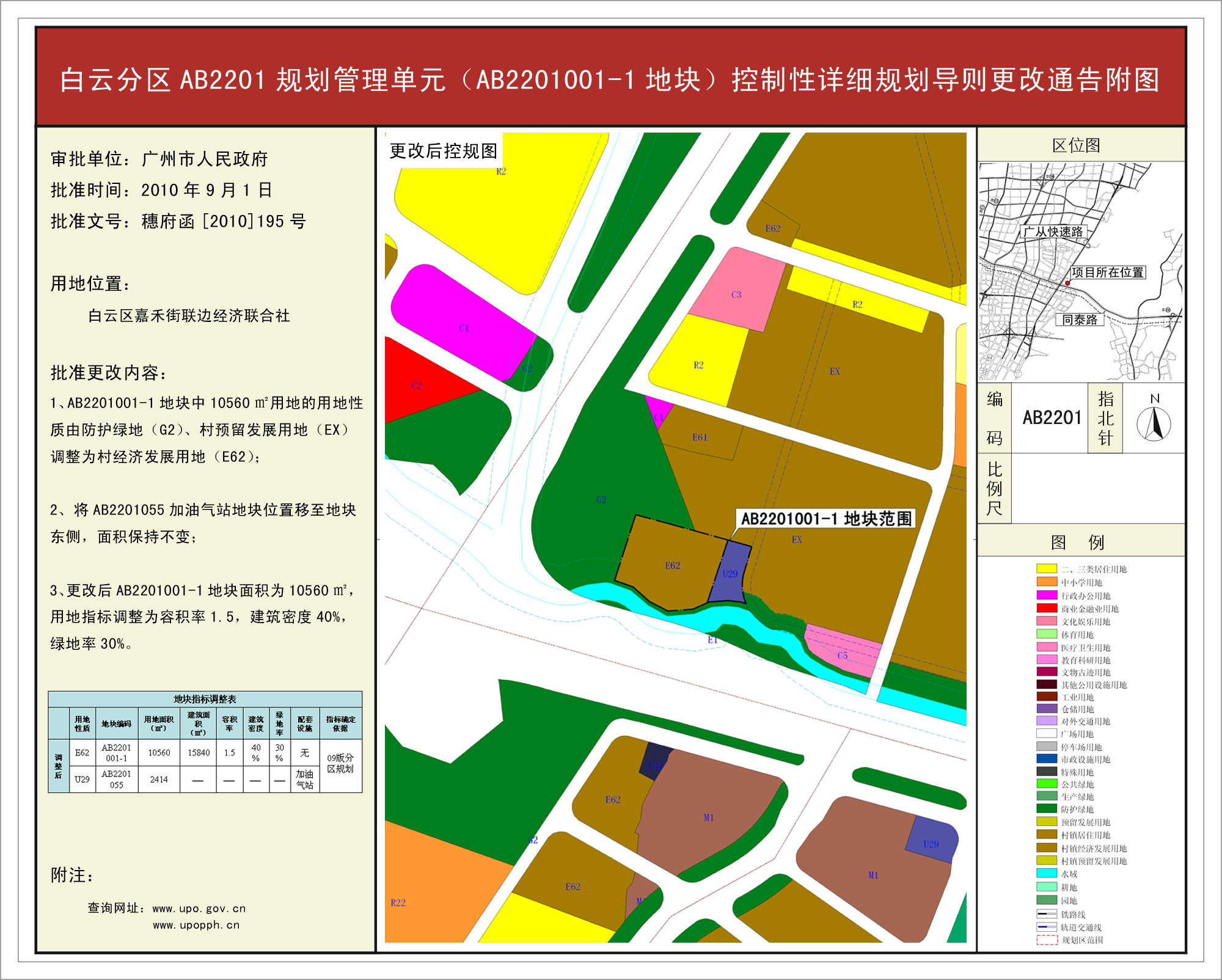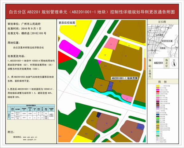 白云分区AB2201规划管理单元(AB220100-1地块)控制性详细规划导则更改