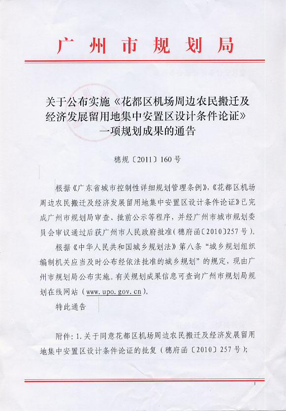 花都区机场周边农民搬迁及经济发展留用地集中安置区设计条件认证
