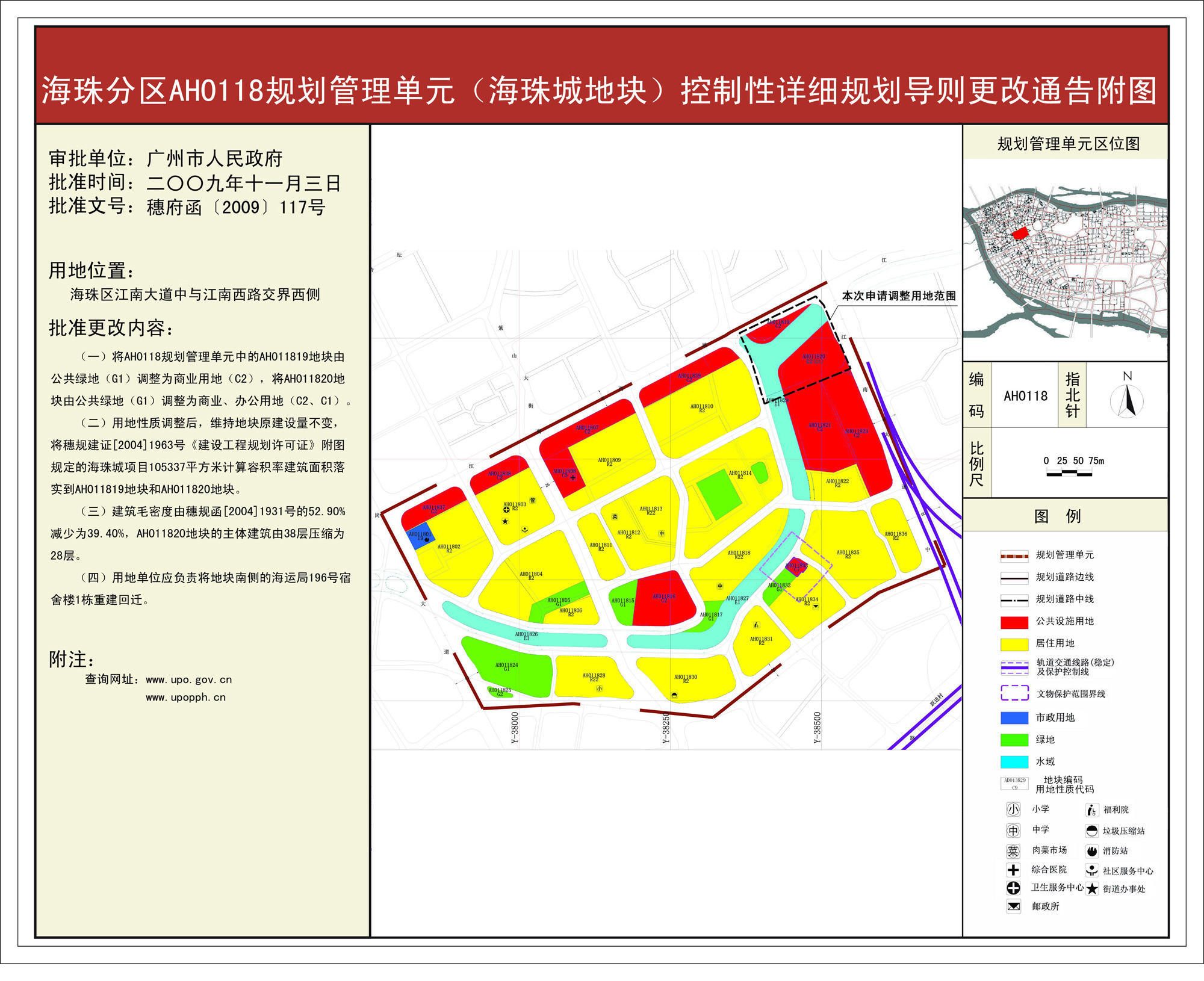 关于同意海珠分区AH0118规划管理单元(海珠城地块)控制性详细规划导则更改的批复 沙巴体育APP网站