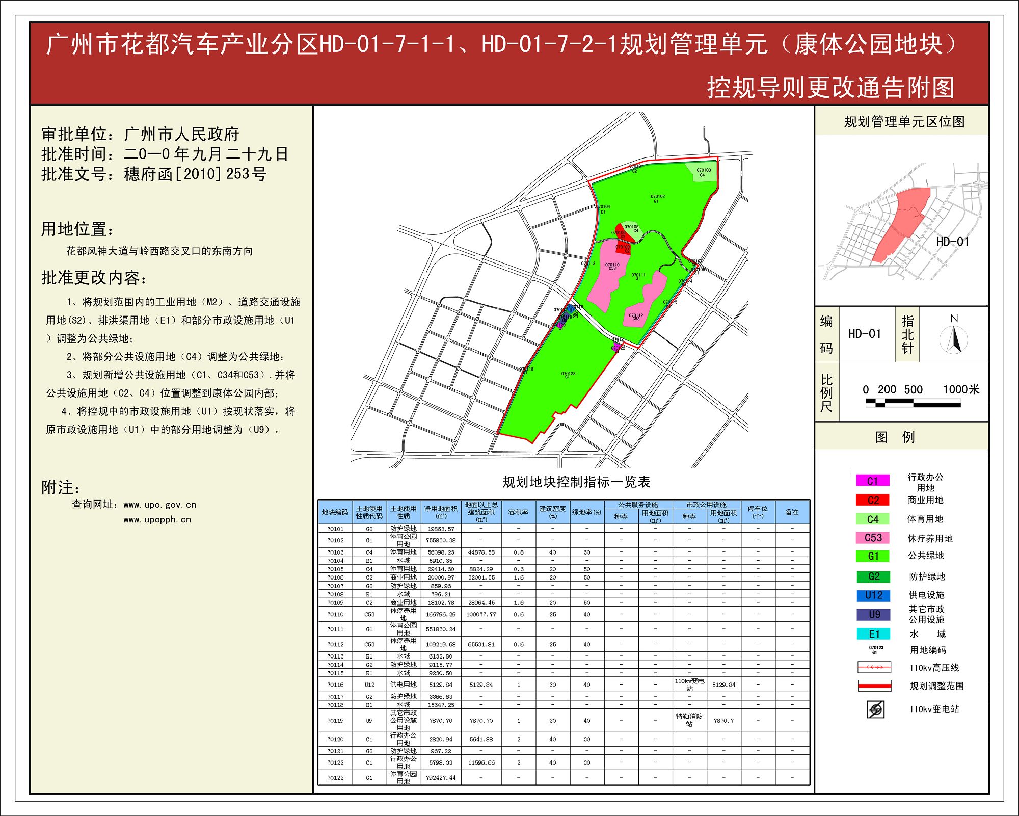 广州市花都区汽车产业分区HD-01-7-1-1HD-01-7-2-1(康体公园)控制性详细规划导则更改
