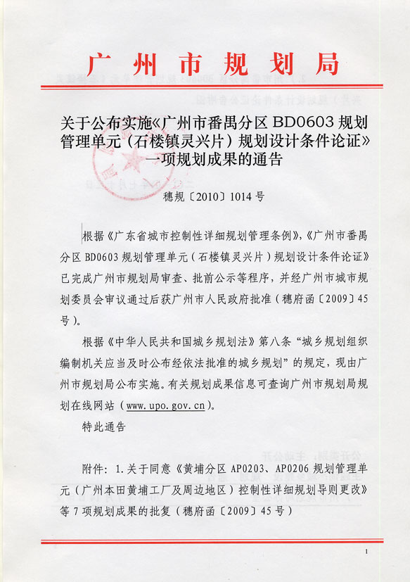 广州市番禺分区BD0603规划管理单元(石楼镇灵兴片)规划设计条件论证 沙巴体育APP网站