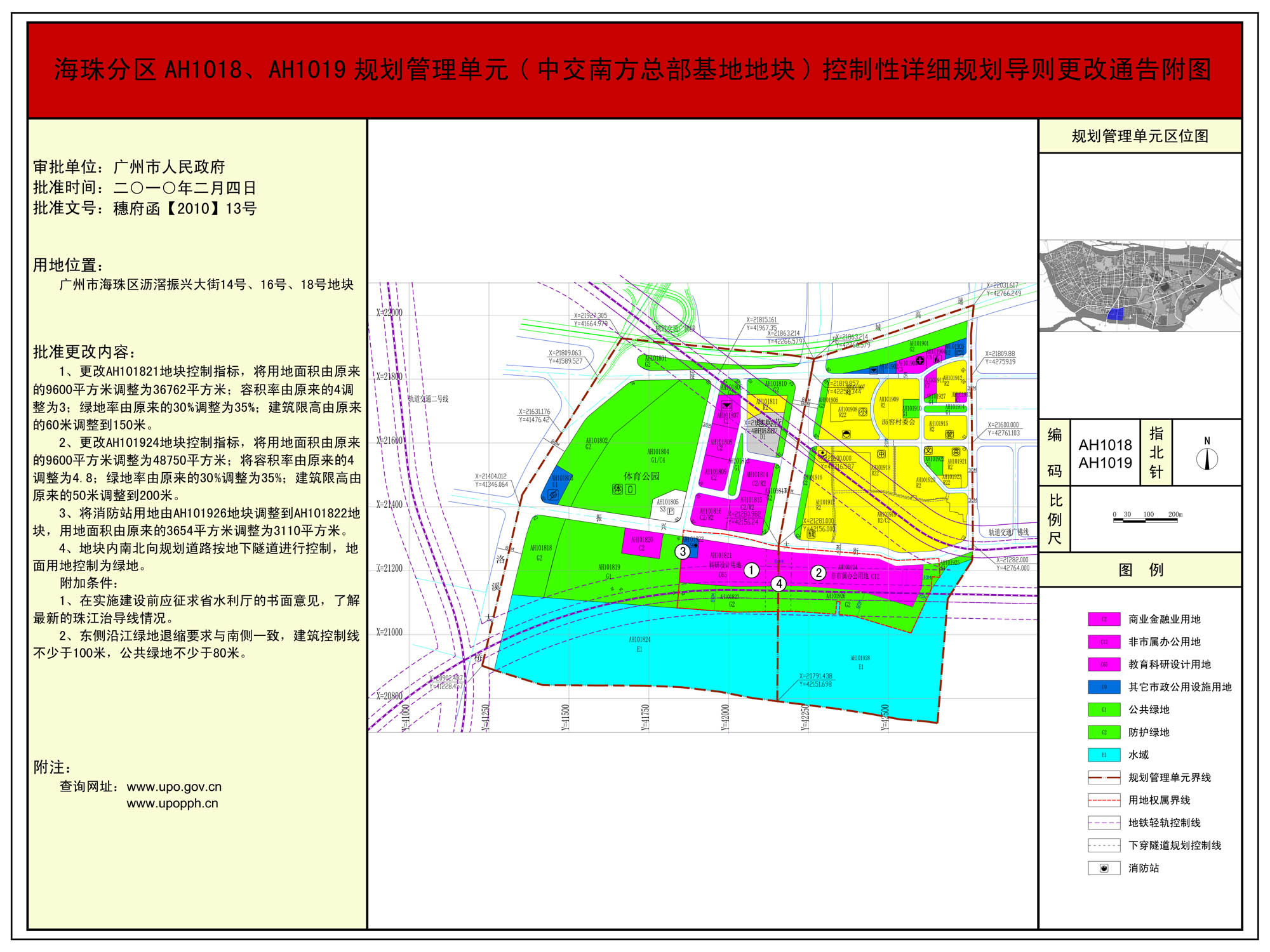 海珠分区AH1018、AH1019规划管理单元(中交南方总部基地地块)控制性详细规划导则更改 沙巴体育平台网站