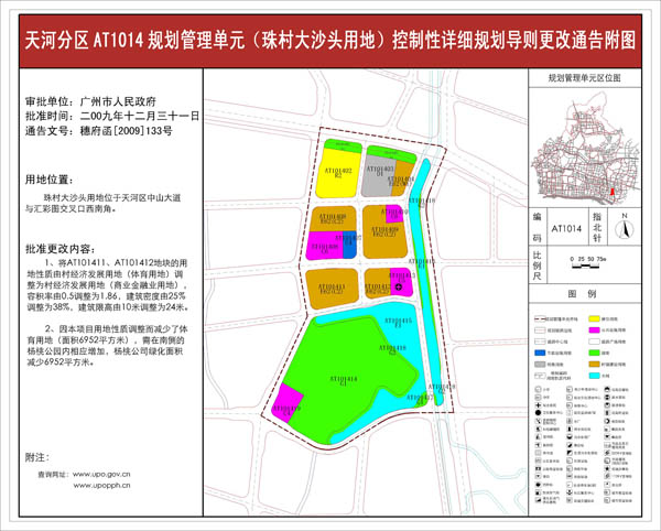天河分区AT1014规划管理单元(珠村大沙头用地)控制性详细规划导则更改