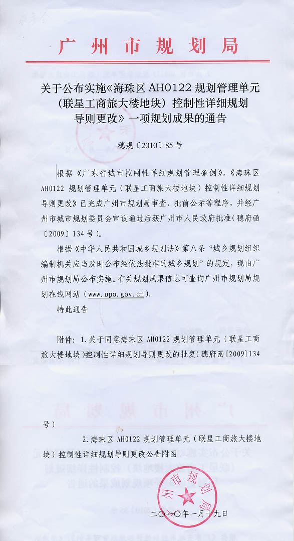 海珠区AH0122规划管理单元(联星工商旅大楼地块)控制性详细规划导则更改 沙巴体育APP网站