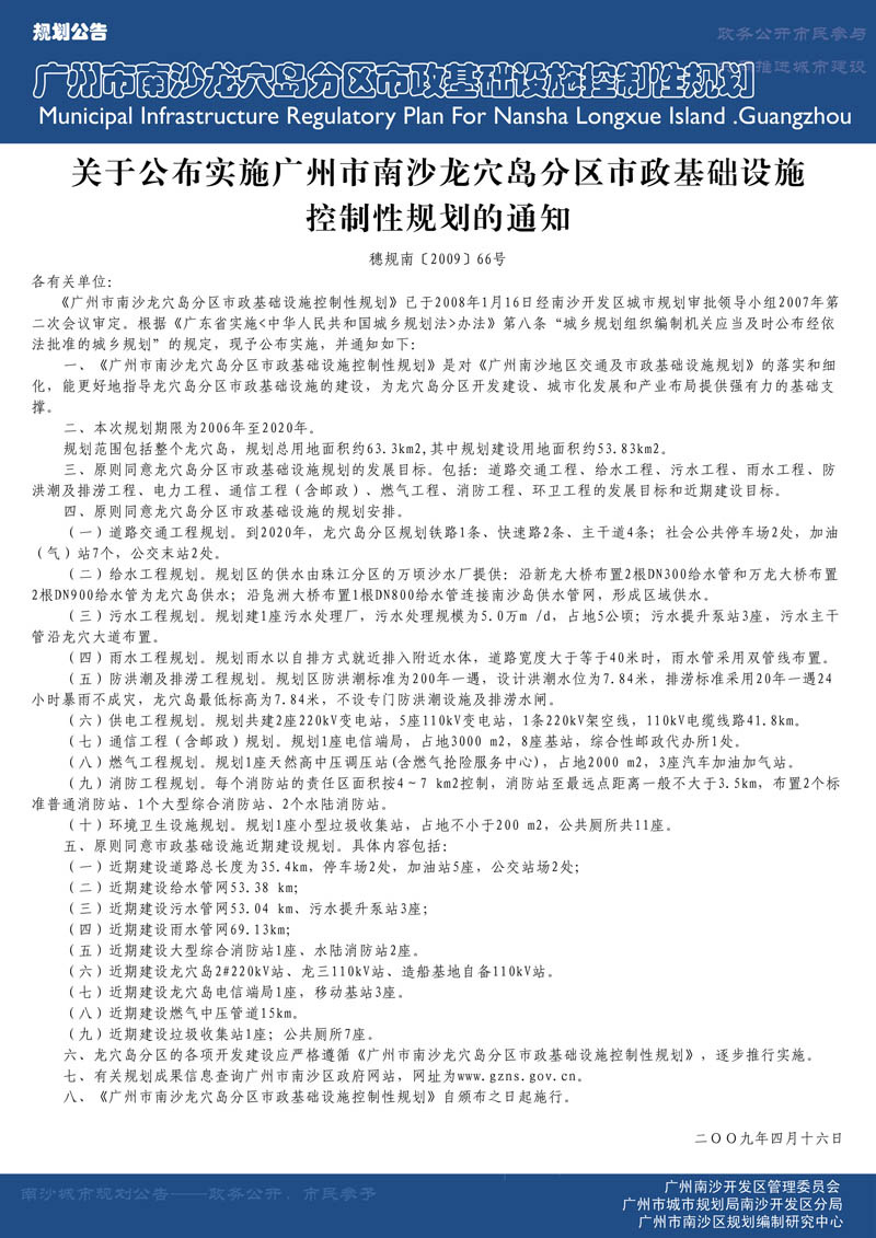 广州市南沙龙穴岛分区市政基础设施控制性规划 沙巴体育APP网站