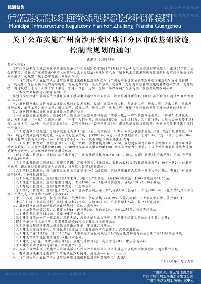广州市南沙珠江分区市政基础设施控制性规划 沙巴体育APP网站