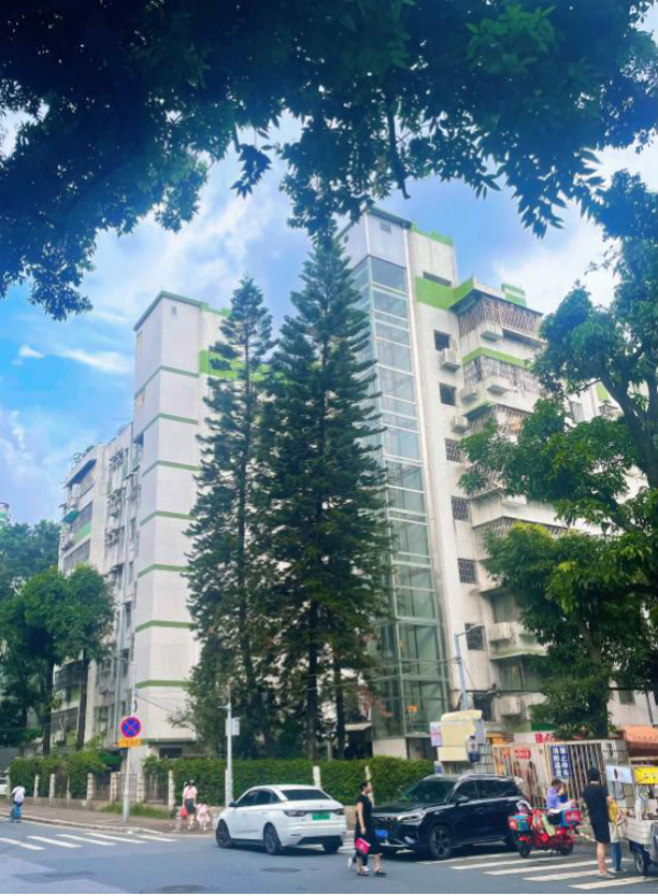 加装电梯,共识难达是首道关卡。海珠区杏园大街某梯居民曾经电梯材质选择陷入两难:钢筋混凝土影响采光,金属外观破坏风貌,海珠区分局现场考察后,提出“拆除楼梯间旧墙+透明玻璃梯井”的巧思。既引入阳光入室,又借窗外绿意成景,赢得街坊一致称赞。