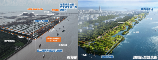 项目通过打破堤围即破除原有的养殖围堰,将堤身主体结构整体后移200米,主动为滨水区域释放核心生态空间,打破陆海分割的刚性边界,重塑富有弹性的滨海生态带。这一“退”一“还”之间,不仅是对物理空间的重塑,更是对海岸带生态系统服务功能的系统性恢复,实现了从“防御海洋”到“拥抱海洋”的范式跨越。
