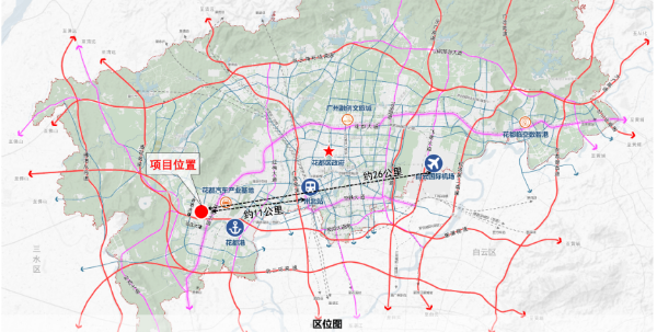 本次规划范围位于花都区炭步镇合进大道以东、沿江大道以北,总用地面积2.03公顷。项目周边产业基础扎实,毗邻东方雨虹、蔻斯汀化妆品等龙头企业及产业园区,产业基础扎实。项目地块距广州北站约11公里、白云国际机场约26公里,周边有公交站点覆盖,1公里内规划公交首末站,交通便捷且市政设施完善。