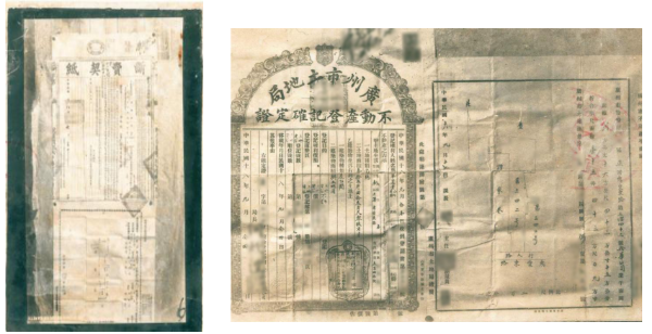 1929年断卖契纸照(广州市房地产档案馆馆藏) 1929年不动产登记确定证照(广州市房地产档案馆馆藏)
