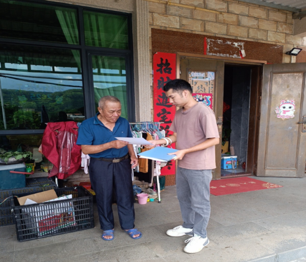 图为向群众发放地质灾害避险通知书