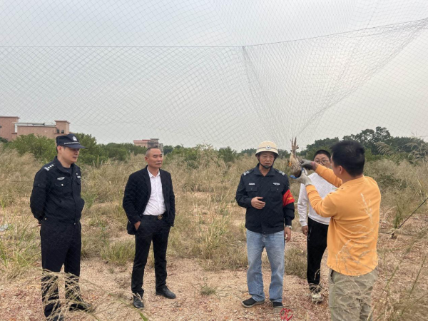 花都区分局联合森林公安开展巡查中发现捕鸟网并现场拆除