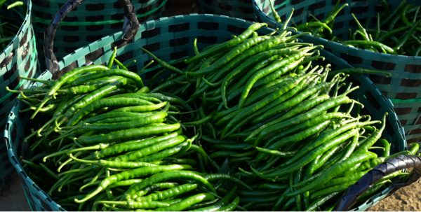 种植基地的青椒果型饱满、色泽鲜亮