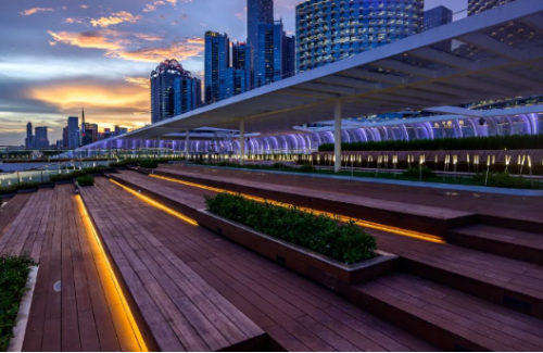在匠心营造下,“月光宝盒”猎桥变电站的外观设计充满了创新和美感。外立面采用具有工业气息的铝方通竖向构件和穿孔网将变电站包裹,半透明的材质使整个建筑充满轻灵感,给人无限想象空间。同时,变电站还以层层退台的形式面朝珠江,结合城市滨江绿地和慢跑道,形成了北高南低的建筑姿态,以温润如玉的形态融入了城市。