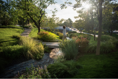 三是多元空间,丰富体验。结合场地竖向搭配不同层次的绿化种植,营造错落有致、丰富立体的绿化景观。同时置入活力乐园、艺术花园、自然农场等功能,使得居民、游客、学生、上班族都可在创新城中央公园有多样化游乐体验。