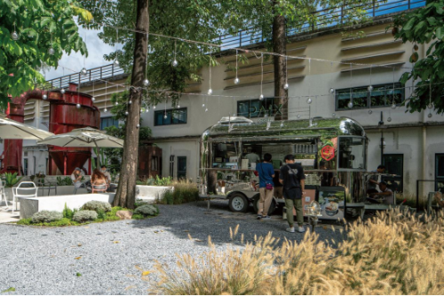 T.I.T创意园通过整体抽疏、拓展绿化的方式,对园区整体环境质量进行提升优化,增强与城市景观体系的联系和融合。改造后园区整体容积率约为0.5,绿化率超过80%。与广州新城市中轴线的新电视塔、赤岗塔公园等城市景观融为一体,成为周边地区市民休闲活动的场所和外地游客的网红打卡点。