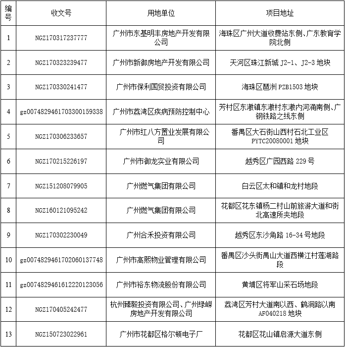 我委受理的下列案件已通过审定,请下列单位按照《关于签订广州市国有建设用地使用权出让合同(含变更协议)的告知函》的规定到我委签订国有建设用地使用权出让合同或变更协议,逾期将作退案处理。(咨询电话:83311195)