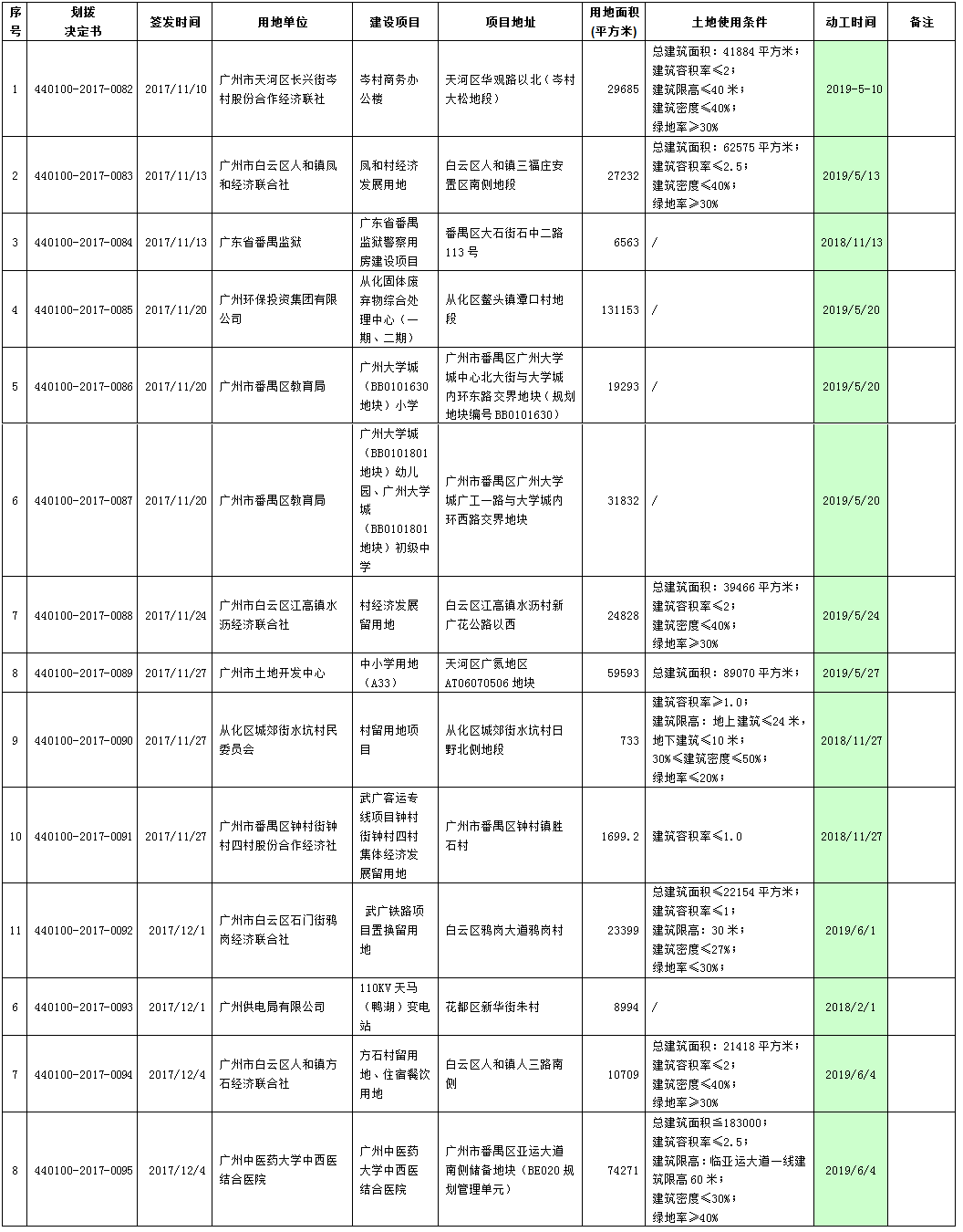 2017年11月广州市国有土地使用权划拨情况公告
