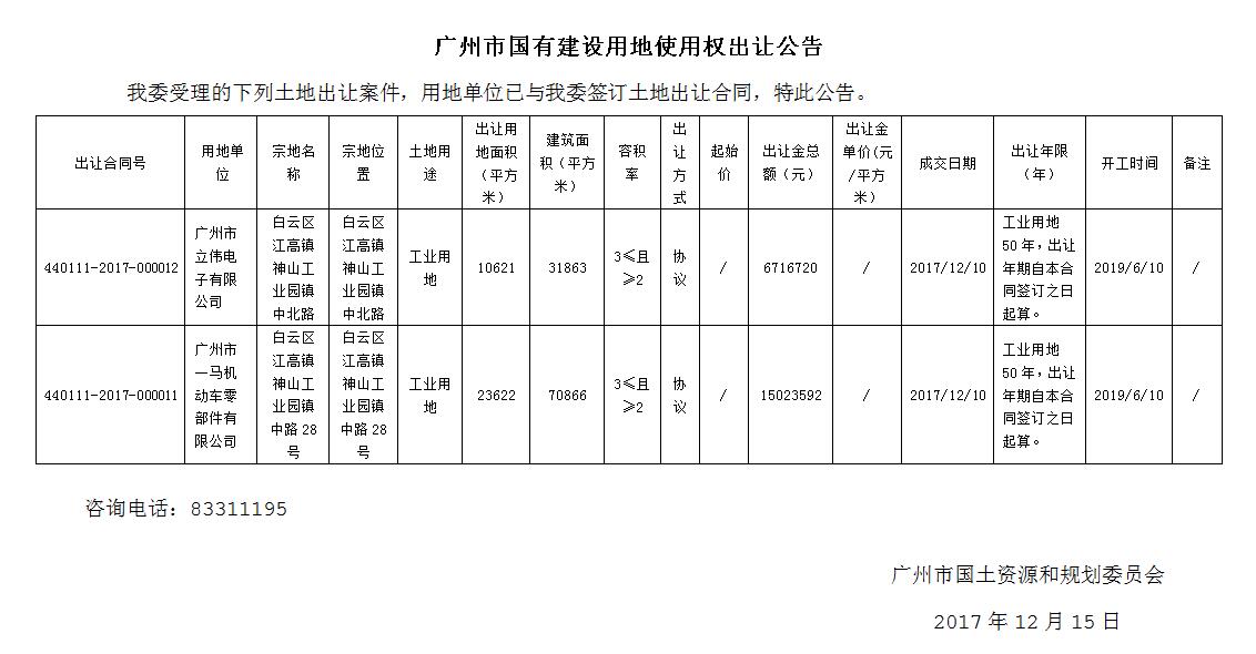广州市国有建设用地使用权出让公告 (2017年12月10日出让地块) 沙巴体育APP网站