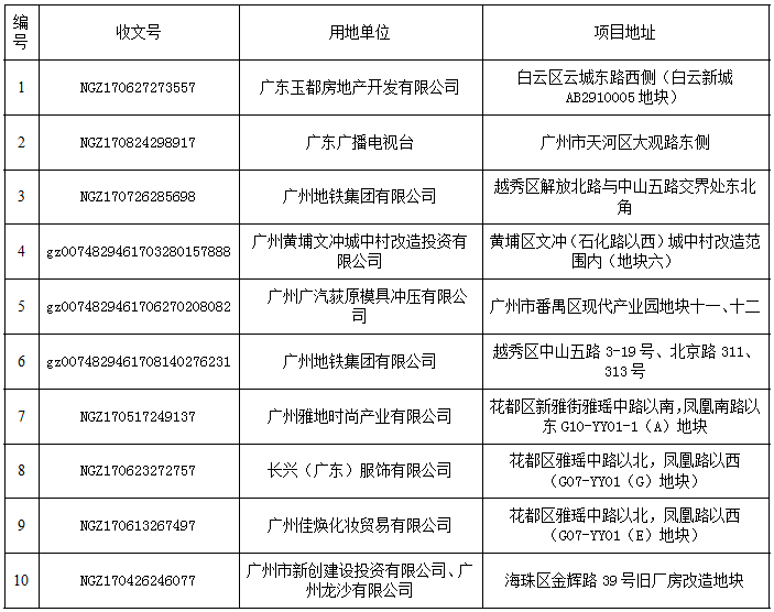 我委受理的下列案件已通过审定,请下列单位按照《关于签订广州市国有建设用地使用权出让合同(含变更协议)的告知函》的规定到我委签订国有建设用地使用权出让合同或变更协议,逾期将作退案处理。(咨询电话:83311195)