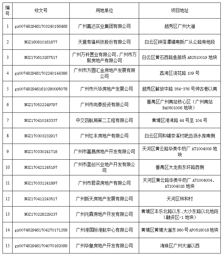 我委受理的下列案件已通过审定,请下列单位按照《关于签订广州市国有建设用地使用权出让合同(含变更协议)的告知函》的规定到我委签订国有建设用地使用权出让合同或变更协议,逾期将作退案处理。(咨询电话:83311195)