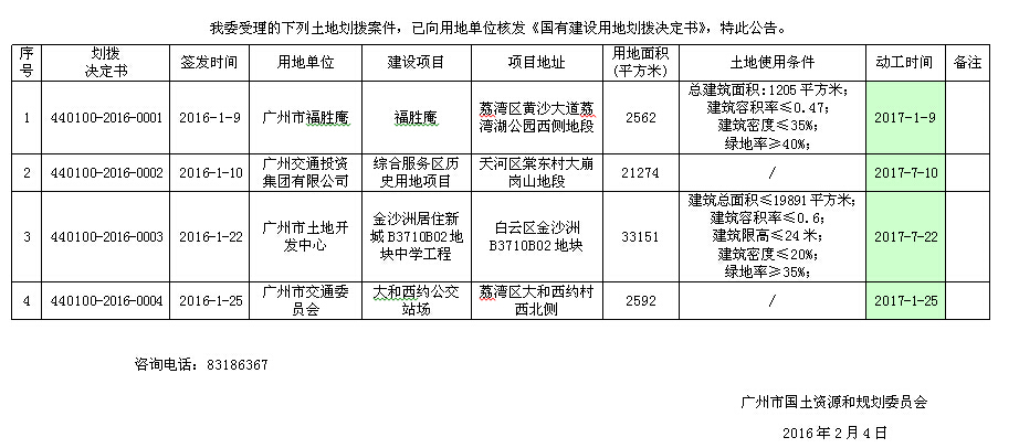 2016年1月广州市国有土地使用权划拨情况公告 沙巴体育平台网站