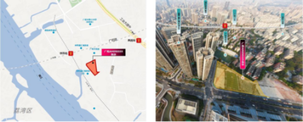 地块位于广纸片区,位于广州市海珠区西部,靠近珠江后航道,地理位置优越,是海珠区的重要发展区域之一。地处地铁广佛线、11号线、24号线(规划)沿线,临近棣园站和燕岗站,生活配套设施一应俱全。