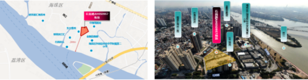 地块位于海珠区南部,周边有地铁广佛线、10号线(在建)、24号线(规划),距离石溪站1000米。临近珠江,坐拥稀缺的江景资源。周边多个住宅小区环绕,还有海珠区外国语实验中学附属第二小学、商行、超市等购物便民设施,生活配套一应俱全。