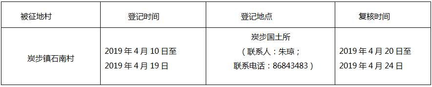 经省人民政府批准(粤国土资(建)字[2018]43号),需将广州市花都区炭步镇石南村属下的集体土地2.9799公顷(合44.6985亩)征收为国有土地。现将经依法批准的《征收土地方案》和市人民政府批准的《征地补偿安置方案》内容和有关事项公告如下: