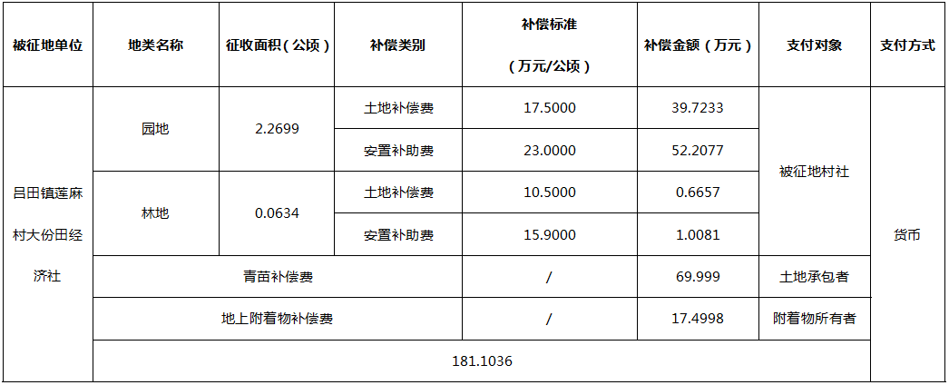 (二)本次征收土地所涉及的被安置农业人员由广州市从化区吕田镇莲麻村大份田经济合作社以货币补偿等形式安置。