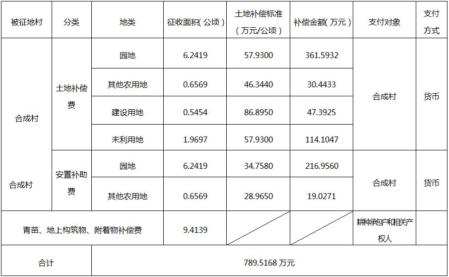 广州市花都区狮岭镇合成村的集体土地合计9.4139公顷(合141.2085亩),其中园地6.2419公顷(合93.6285亩)、其他农用地0.6569公顷(合9.8535亩)、建设用地0.5454公顷(合8.181亩)、未利用地1.9697公顷(合29.5455亩)。