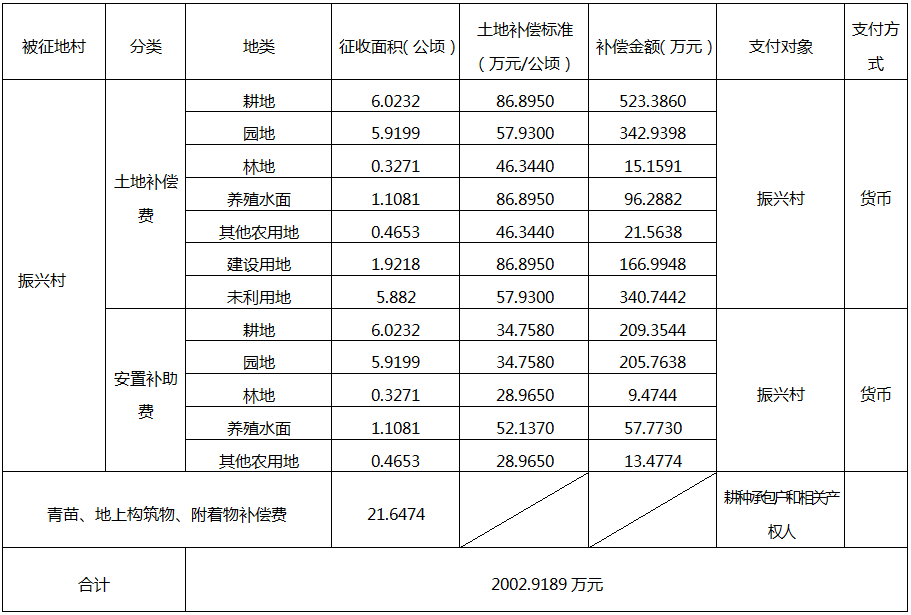 四、征地补偿安置方案: