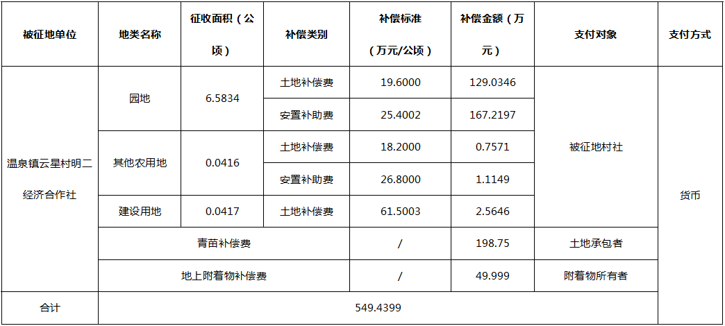 (二)本次征收土地所涉及的被安置农业人员由广州市从化区温泉镇云星村明二经济社以货币补偿等形式安置。