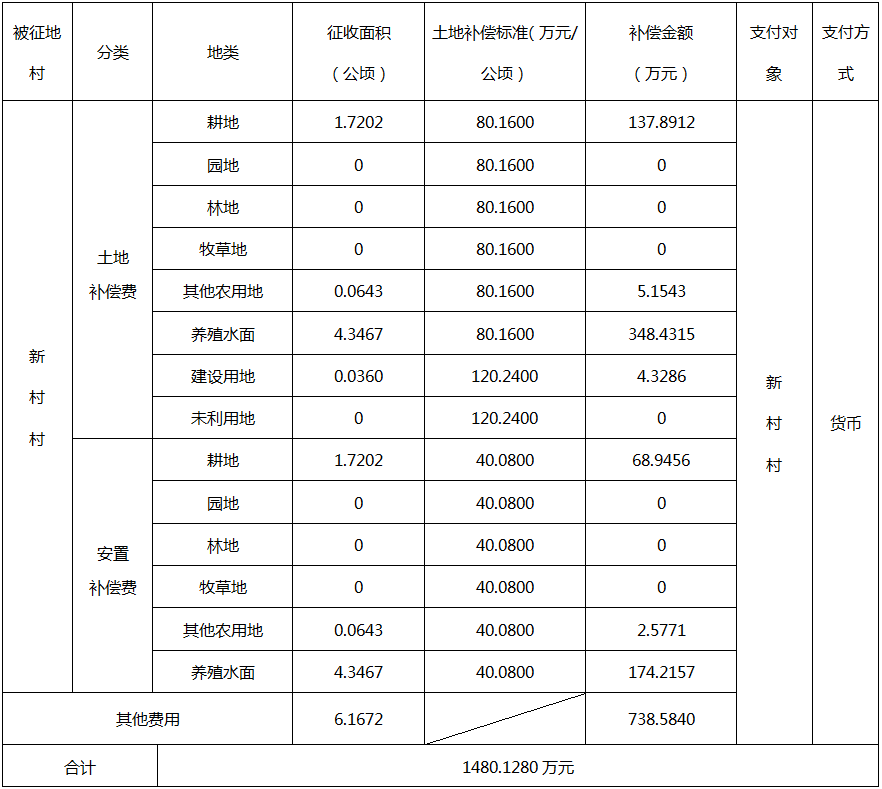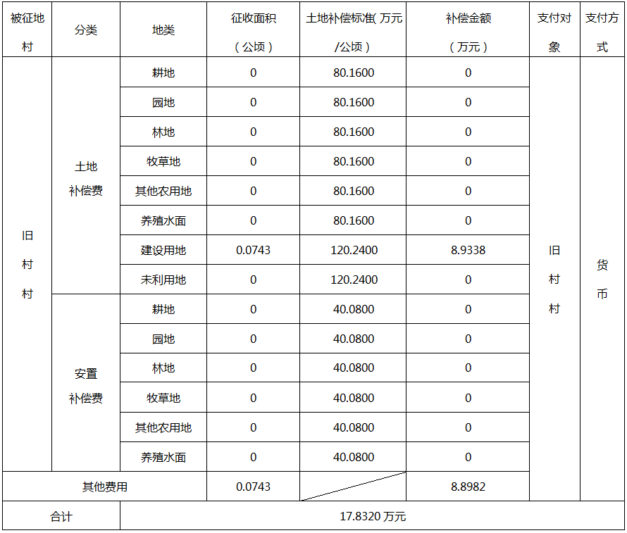 四、征地补偿安置方案: