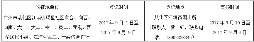 二、征收土地位置:广州市从化区江埔街联星社区、江埔村地段(四至范围详见附图)。