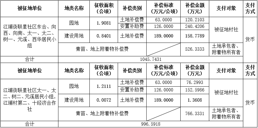 (二)本次征收土地所涉及的被安置农业人员由广州市从化区江埔街联星社区东合、向西、向南、太一、太二、树一、树二、元溪、西华居民小组、江埔村第二、十经济合作社以货币补偿等形式安置。