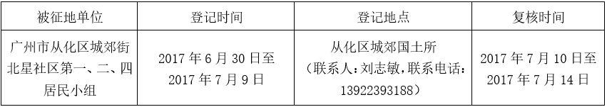 经广州市人民政府同意并经沙巴体育平台批准(粤国土资(建)字〔2017〕17号)同意将广州市从化区城郊街北星社区0.3804公顷集体土地征收为国有土地。现将经依法批准的《征收土地方案》、市人民政府批准的《征地补偿安置方案》内容和有关事项公告如下:
