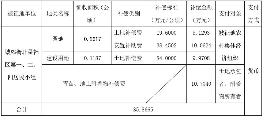 (二)本次征收土地所涉及的被安置农业人员由广州市从化区城郊街北星社区第一居民小组、北星社区第二居民小组、北星社区第四居民小组以货币补偿等形式安置。