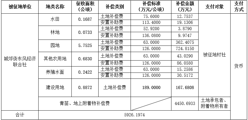 (二)本次征收土地所涉及的被安置农业人员由广州市从化区城郊街东风经济联合社以货币补偿等形式安置。