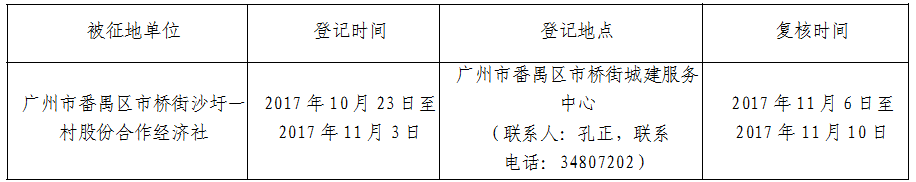 经沙巴体育APP批准(粤国土资(建)字〔2017〕508号文),同意将广州市番禺区市桥街沙圩一村股份合作经济社,面积共0.5231公顷集体土地征收为国有土地。现将经依法批准的《征收土地方案》、市人民政府批准的《征地补偿安置方案》内容和有关事项公告如下: