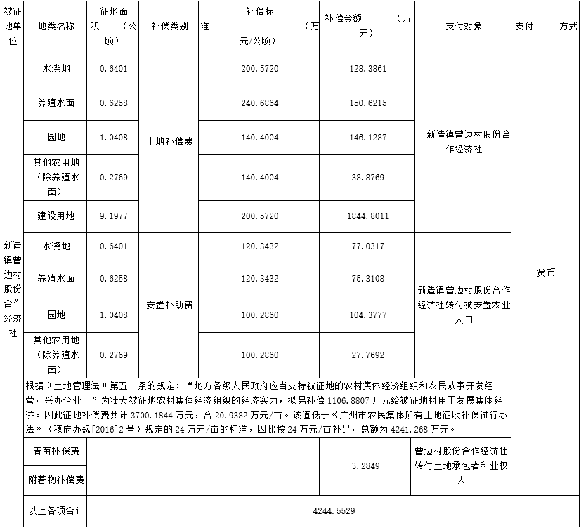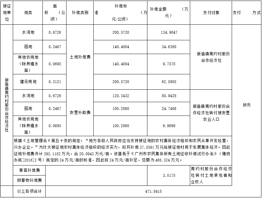 经沙巴体育平台批准(粤国土资(建)字〔2017〕58号文),同意将番禺区新造镇曾边村、南约村,面积共13.0822公顷集体土地征收为国有土地。现将经依法批准的《征收土地方案》、市人民政府批准的《征地补偿安置方案》内容和有关事项公告如下: