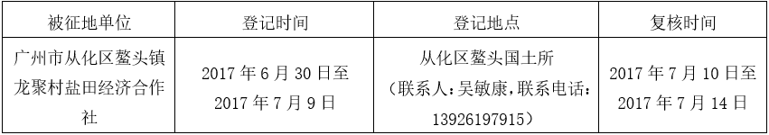 (二)本次征收土地所涉及的被安置农业人员由广州市从化区鳌头镇龙聚村盐田经济合作社以货币补偿等形式安置。