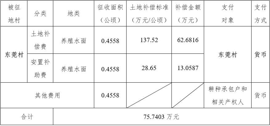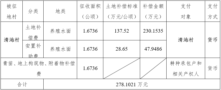 四、征地补偿安置方案: