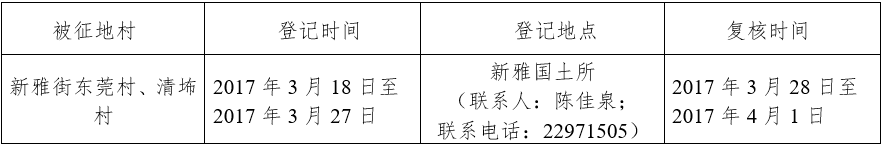 二、征收土地位置:广州市花都区新雅街东莞村、清㘵村(四至范围详见附图)。